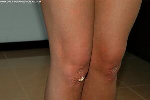 As the door opens Abi quickly gets into the position she was supposed to be in when he had left her. Headmaster Tom is checking on how she is doing. He had left her sitting on the hard floor, wearing nothing but a cami vest. Her legs and feet were not allowed to touch the floor, so she was balancing on her coccyx. When he asks her if she has been in that position since he had left her, she swears that she has. However, unbeknown to her, the hidden cameras have shown her with her feet touching the floor - and masturbating. HM Tom tells her she is disgusting. She explains to him that her reason for coming out of position was due to the discomfort and pain she was in. But she receives no sympathy from him, as the pain and discomfort are part and parcel of the punishment. Therefore, he is going to leave her in that position for a further hour. She pleads with him - telling him she's tired and beginning to shake. So he decides that she needs a cold shower to wake her up. After the cold shower, that makes her gasp, she agrees that she is now awake. Handing her a soft fluffy towel, he tells her to get dried and come back to the living room in two minutes. Unfortunately, she is a minute late and this angers him even more. So he tells her to stand facing the wall and bending down. He cracks the belt across her unprotected bottom, causing her to stand up clutching her tortured bottom each time the belt makes contact with it. She's to spend another hour in pain and discomfort - kneeling in a tray full of peas. There is no way she will be able to masturbate now.